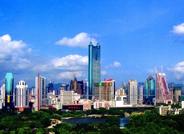 - 项目描述: 地王大厦目前为深圳第三高层建筑,楼高383.95米, 69层商业大楼的建筑体形的设计灵感来源于中世纪西方的教学和中国古代文化中通,透,瘦的神髓,它的宽与高之比例为1:9,创造了世界超高层建筑最“扁”最“瘦”的记录。33层高的商务公寓最引人注目的设计是空中游泳池,空间跨距约25米、高20米,上下延伸由9层至16层。夹在商业大楼和商务公寓中间的是购物商场,它的平面设计以一个形似钥匙洞的5层高的中庭为主。